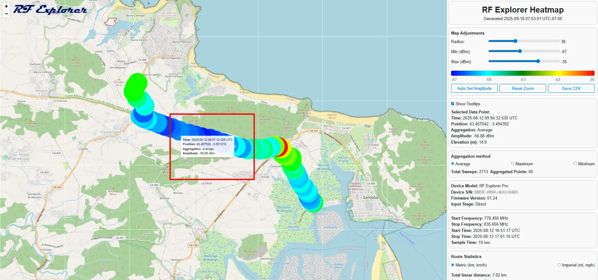 - Device Information: Details about the RF Explorer device and input stage used to collect the data.