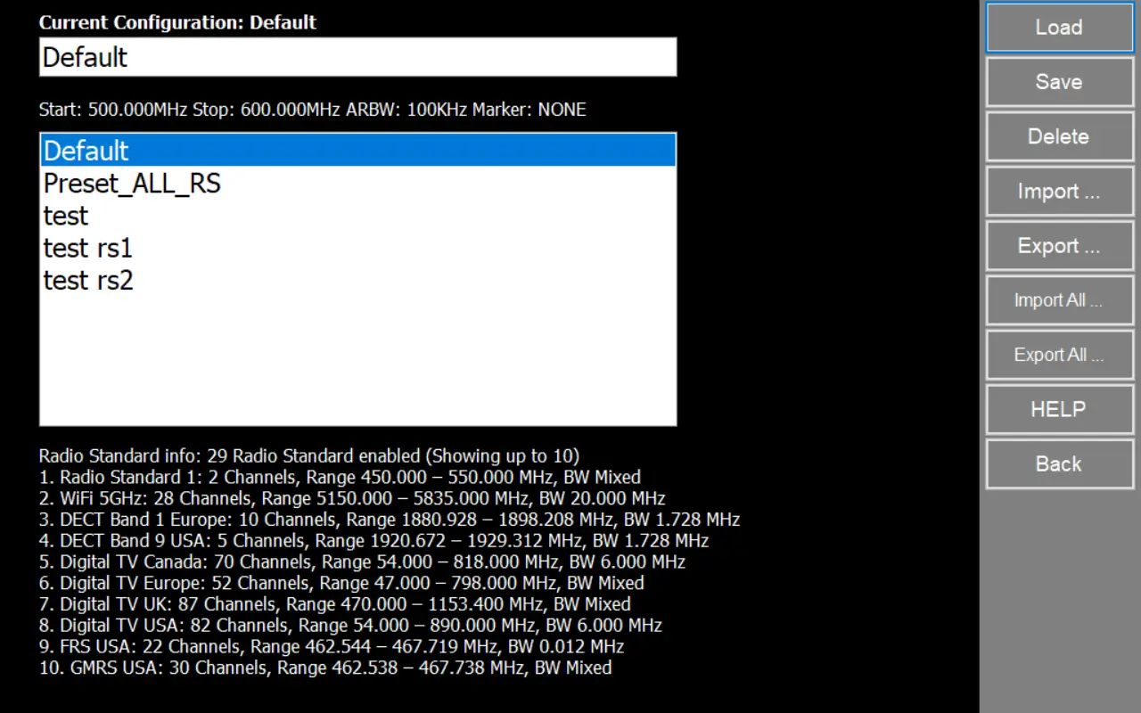- The full Radio Standard configuration is included in these files and will be imported/exported with the Preset. When you import a Preset, its Radio Standards are automatically added to the Radio Standard Inventory so the preset can be used correctly.