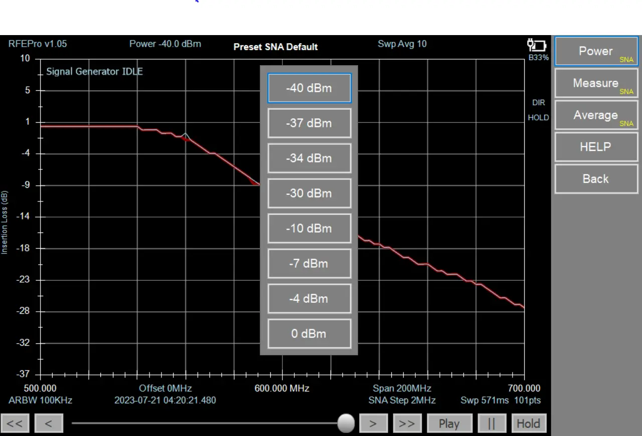 Select Signal Generator power for tracking SNA