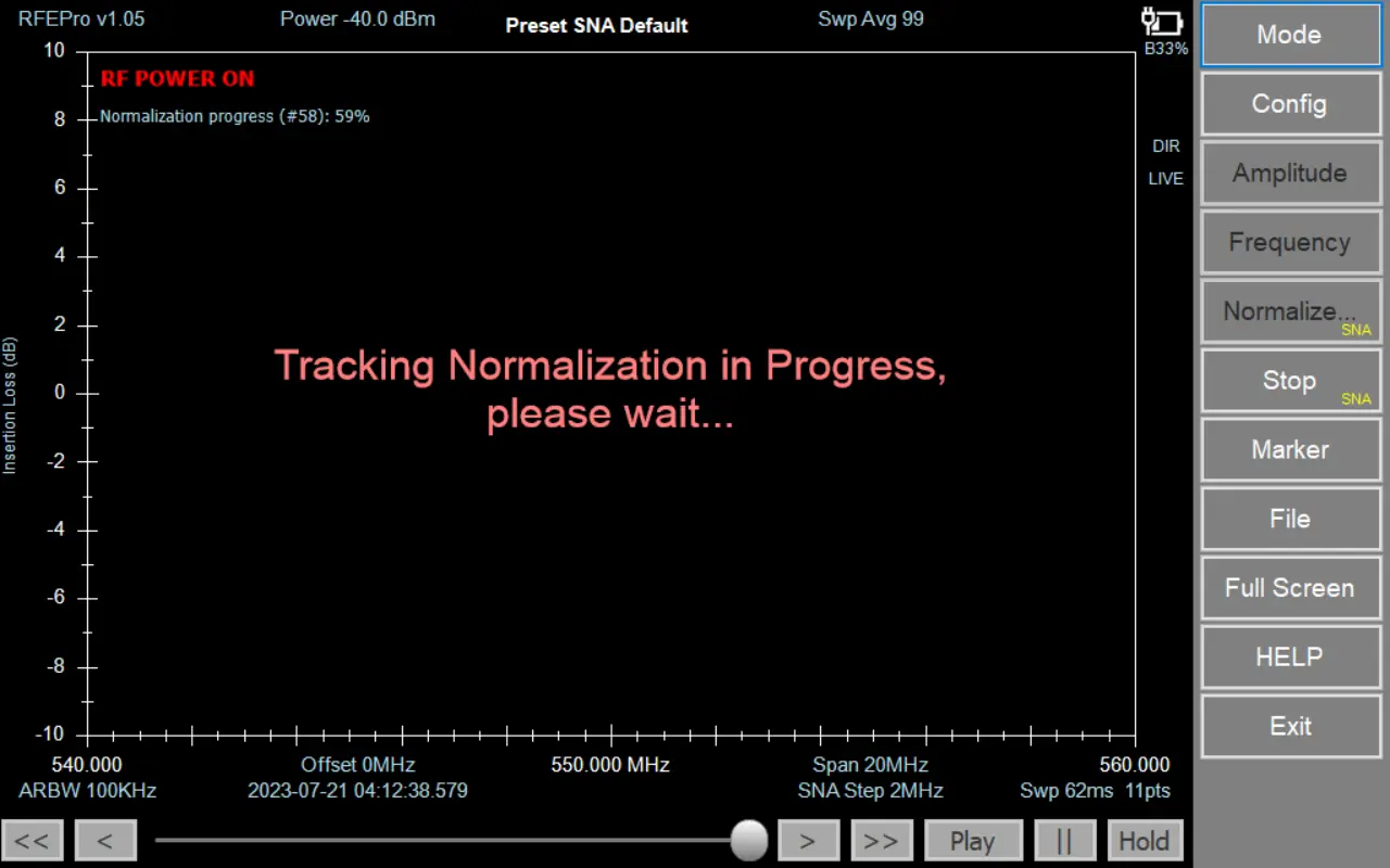 A standard SNA requirement ensures the elimination of any imperfections caused by cables, connectors, or environmental factors. The application accurately measures your setup's response and sets it as the 0 dB reference, allowing all subsequent measurements to be normalized accordingly.