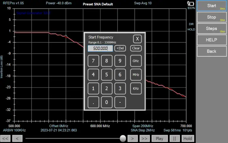 RF Explorer Pro Frequency and Amplitude configuration