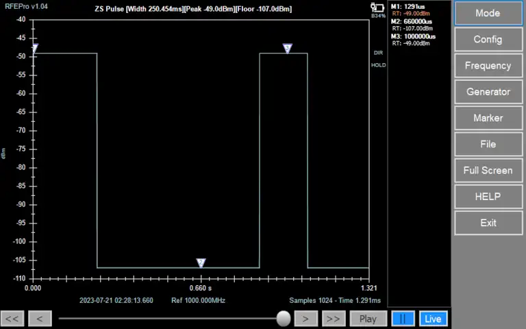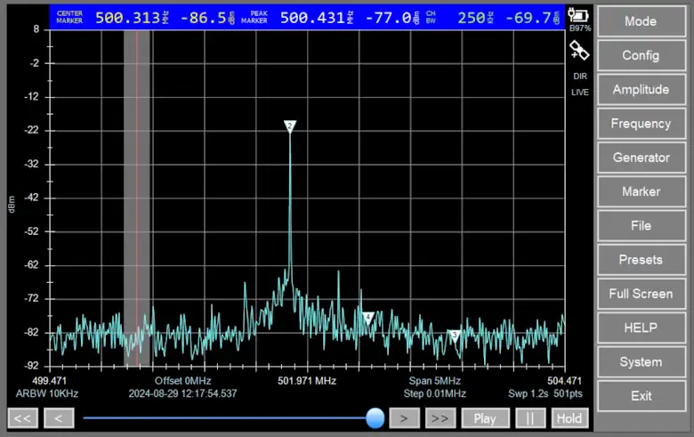 The Dynamic Marker is an advanced and unique feature, designed to enhance your RF Explorer Pro experience by offering unprecedented control and insight into the spectrum analysis process. This innovative tool introduces gesture-based markers that allow for precise, detailed interaction with spectrum data.