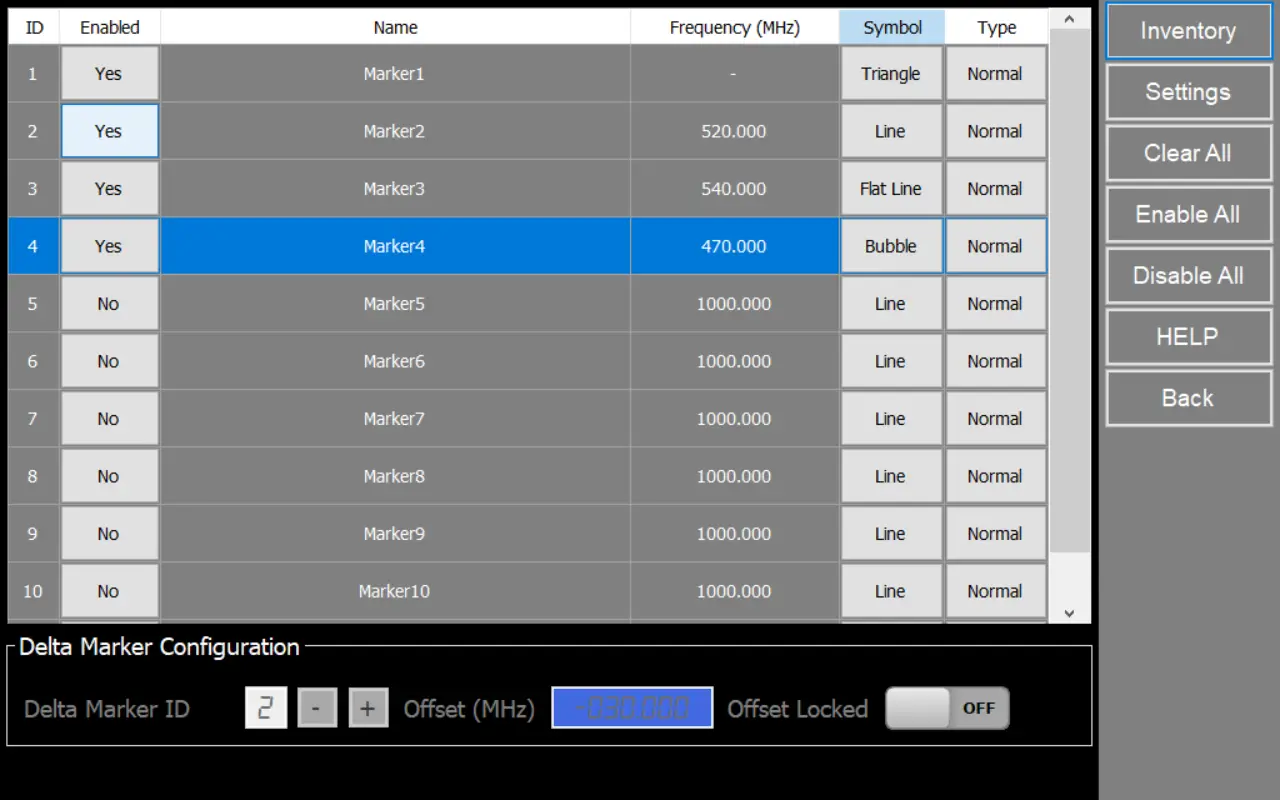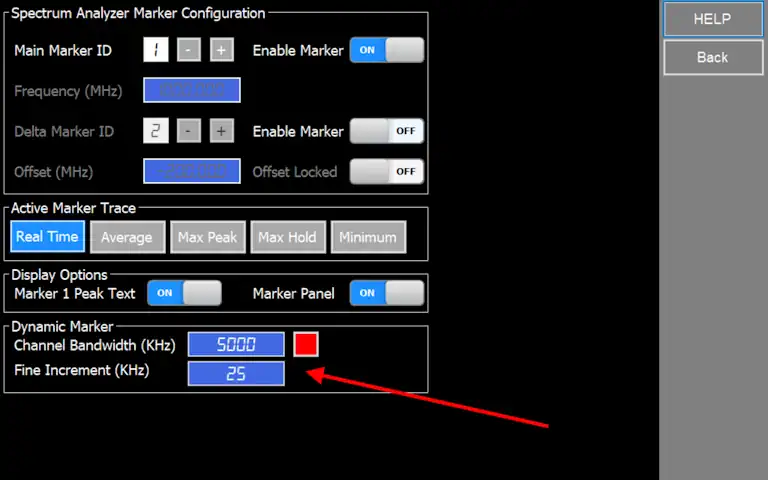 - Future upgrades will allow for optional dynamic markers where offset will be locked so Main Marker absolute frequency value can change accordingly to the Delta Marker.